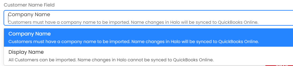 Alternatively, we'll need to set HaloPSA to sync by Display Name instead of Company Name